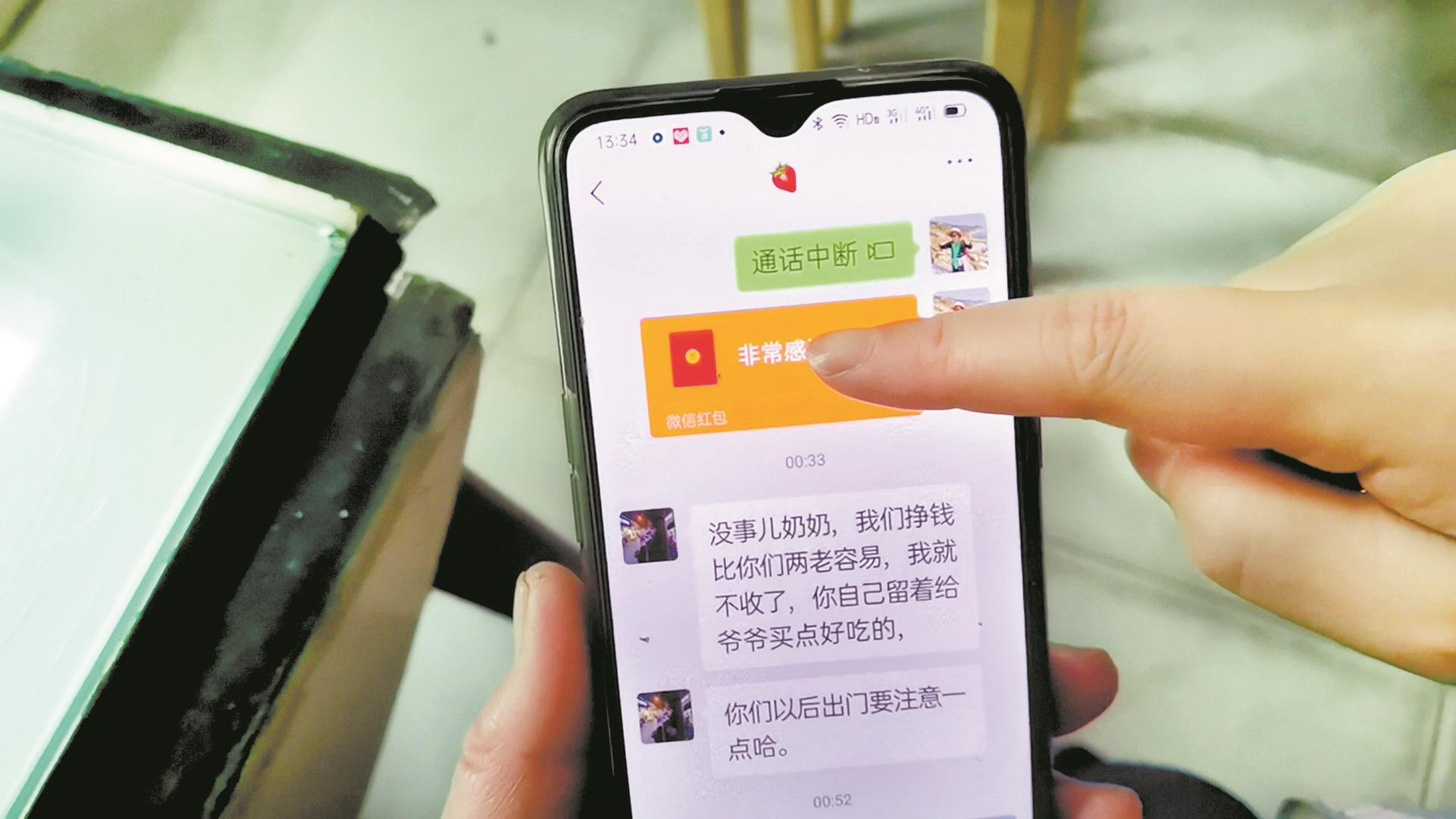 接到電話半小時后,盧婆婆到小區門口接到了老伴。“的士司機還找給我77元錢,說是那個小姑娘給的錢。”當晚,盧婆婆通過微信給姑娘發了一個200元紅包。“沒事奶奶,我們掙錢比兩老容易,我就不收了,你自己留著給爺爺買點好吃的。”姑娘回復道。