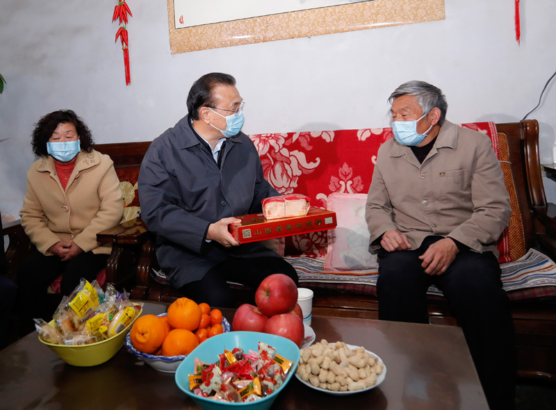 李克強2月7日上午考察山西運城年貨市場,強調要保供穩價,并用心選購了兩份年貨。隨后,總理來到夏縣廟前鎮吳村,走進脫貧戶范起山家中,關切詢問他家有幾畝地、種地和外出打工各自收入多少,勉勵他們脫貧以后不松勁、不止步。臨行前,李克強把一份年貨送到范起山手中說,這是我自己在集市上買的,代表我個人的一點心意,祝你們年年有余、越過越好。下午,總理來到鹽湖區圣惠片區棚戶區居民孟樹平家中,詢問他們生活有什么不便。孟樹平說,這里上下水不暢,下雨天雨水會倒灌,冬天沒有暖氣,迫切希望改造。地方負責同志匯報了他們正在引入市場力量加快改造,李克強予以肯定,叮囑說,要順應群眾期盼抓緊開工,國家對棚戶區和老舊小區改造會繼續予以支持。出門前,總理把另一份年貨送到孟樹平手中,祝他家早日搬進新樓房,把“老日子”過成“新日子”,過上“好日子”。