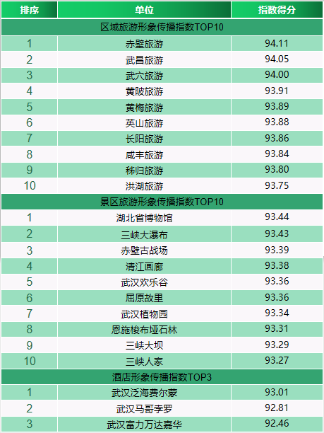 6.榜單監測范圍包括省內近200家景區、酒店,監測樣本和數量每周會根據實際情況進行微調。歡迎各景區運營部門或負責人自薦,加入排行榜(聯系電話:027-88567710);