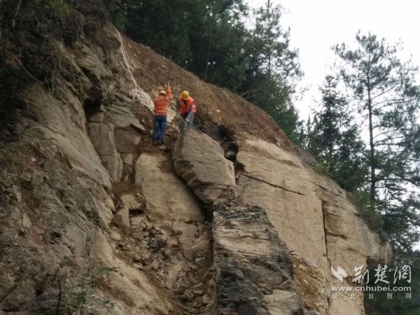 養護工人前往易垮塌山石處理高危邊坡。通訊員 供圖