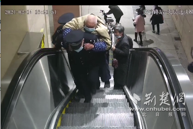 大年初三,武漢地鐵8號線黃埔路站正在運行的地鐵扶梯上,一位老人突然摔倒。危急之際,武漢市公安局軌道分局政委陳京飛身快速按下急停鍵,跳上扶梯救下老人,贏得群眾紛紛點贊。