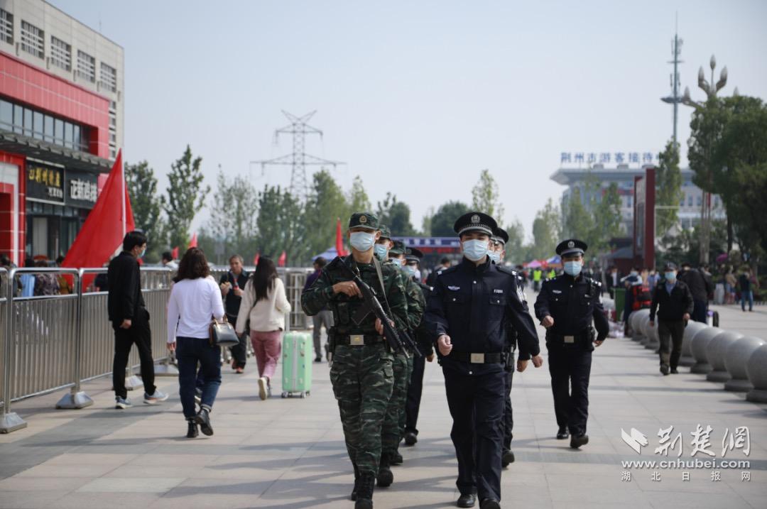 荊州市公安局民警在火車站廣場巡邏(通訊員供圖)