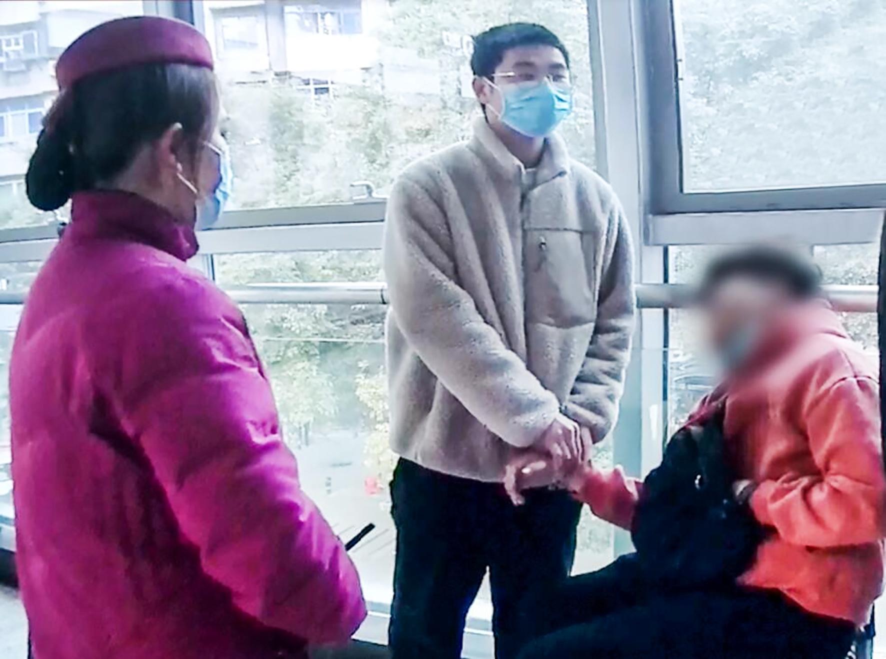 這時下一趟列車到站,一位年輕男乘客下車后準備離開時,看到這一幕,回過頭詢問工作人員:“我是醫(yī)生,有需要我?guī)兔Φ膯幔俊痹瓉恚谐丝褪窃谖洳鞏|工作的醫(yī)生。工作人員便將這位熱心的醫(yī)生引導患者身旁。