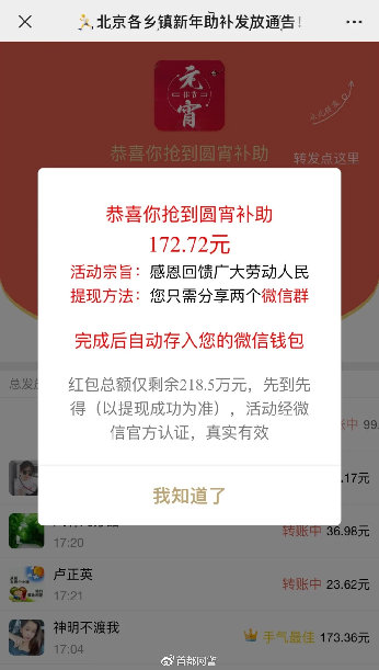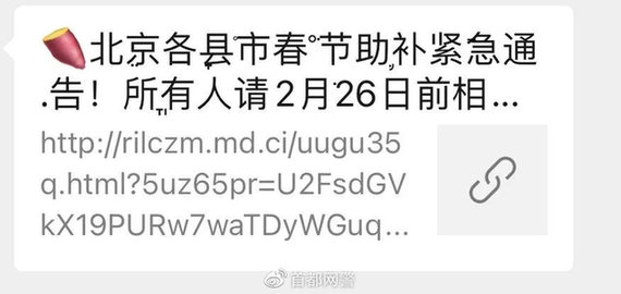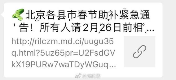 元宵節(jié)快到了,不法分子們動(dòng)起了歪心思,打著領(lǐng)取節(jié)日補(bǔ)助的幌子,在微信群里推送各種鏈接,小編的同事也收到了這樣的“提示”。領(lǐng)取補(bǔ)助到底是真是假?假的!別信!別轉(zhuǎn)!下面我們就來(lái)看一下這類騙局。