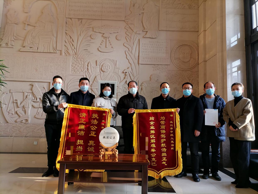 2月9日,某大型民營企業給武漢中院執行干警送來錦旗和感謝信。武漢市中級人民法院供圖