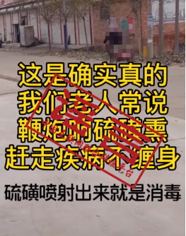 真相:燃放煙花爆竹會產生大量煙霧,這種煙霧的成分主要是二氧化硫,與空氣中的水分形成稀硫酸氣溶劑后,不僅治療不了任何疾病,還會對人體的呼吸系統形成不同程度的刺激和傷害。特別是遇到不利于污染物擴散的秋冬季大霧天氣,可能會造成污染。
