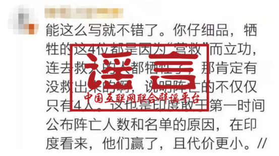 謠言二:在加勒萬河谷沖突中,中方陣亡人數超過4人?