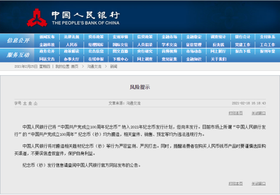 謠言三:“中國共產黨成立100周年”紀念幣已發行?