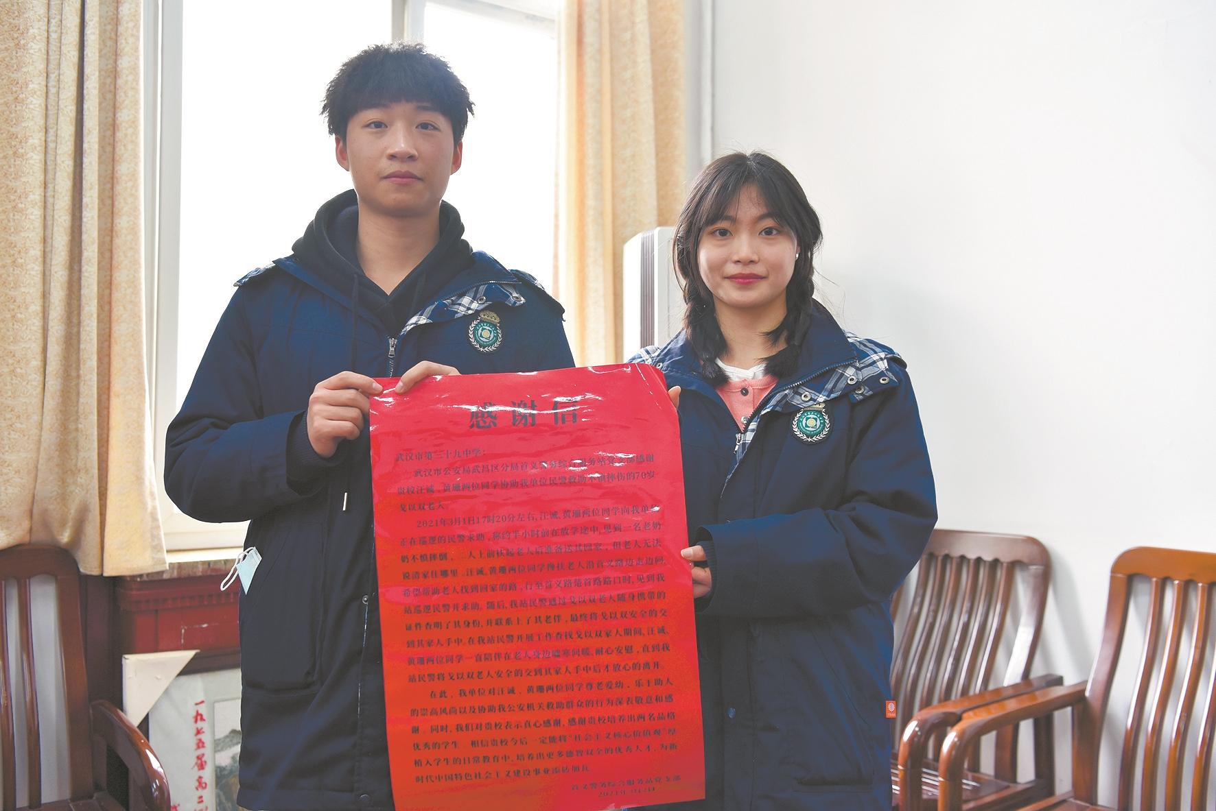 楚天都市報極目新聞訊(記者張裕 通訊員常莉 孫遜)一名老人在路上摔倒,兩名路過的高中生將老人扶起,并叫來民警幫忙。昨日,極目新聞記者從武漢市第三十九中學獲悉,武昌區公安分局首義路警務站專程向兩名學生送來感謝信。