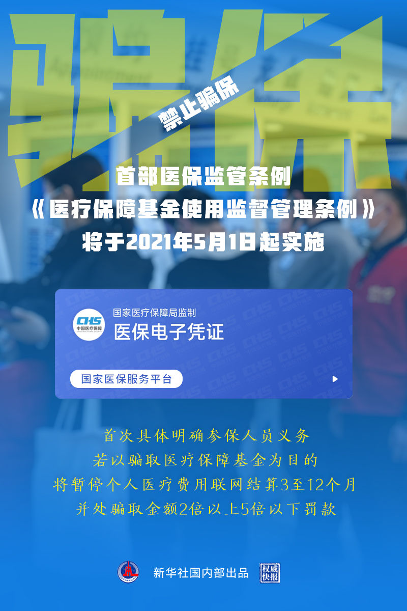 近日,我國首部《醫(yī)療保障基金使用監(jiān)督管理?xiàng)l例》正式頒布,將于今年5月1日正式實(shí)施。條例明確要求,醫(yī)保基金專款專用,任何組織和個(gè)人不得侵占或者挪用。參保人員不得將醫(yī)保憑證交由他人冒名使用,不得重復(fù)享受醫(yī)保待遇,不得利用醫(yī)保待遇轉(zhuǎn)賣藥品。若以騙取醫(yī)療保障基金為目的,將暫停個(gè)人醫(yī)療費(fèi)用聯(lián)網(wǎng)結(jié)算3至12個(gè)月,并處騙取金額2倍以上5倍以下罰款。