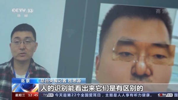 總臺央視記者 杜思源:因為本來是兩個人的照片。對我們普通人來說人的識別能看出來它們是有區別的。算法能讓這兩個圖片在機器看來是相似的。