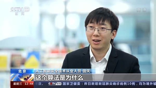 人工智能安全技術從業人員 田天:它其實(深度學習)里面的一些內在邏輯是人難以理解的,乃至說設計者其實也并不明白,這個算法是為什么能夠產生這樣子的工作效果。所以導致一個很大的問題是由于設計者也沒有辦法完全控制算法的輸出、算法的執行邏輯,就導致其中里面一定會有一些執行過程是跟設計者的意圖不吻合的。