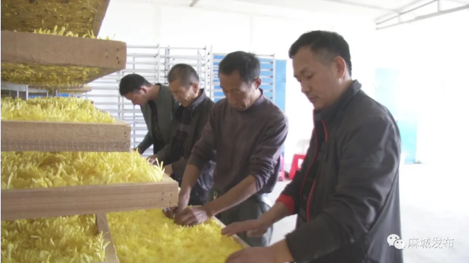 張慶華說:“種別的不行,種菊花要好一點(diǎn),帶動(dòng)貧困戶脫貧。一天30多人(摘花),我種了40多畝,去年30畝,今年多了10幾畝。”