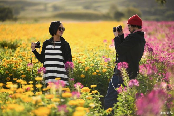 在袁弘曬出的照片中,張歆藝頭戴貝雷帽,墨鏡遮面,身穿條紋長(zhǎng)裙,挺著巨大孕肚的她置身于花海,回眸甜笑看向老公鏡頭,臉上洋溢著幸福與喜悅。