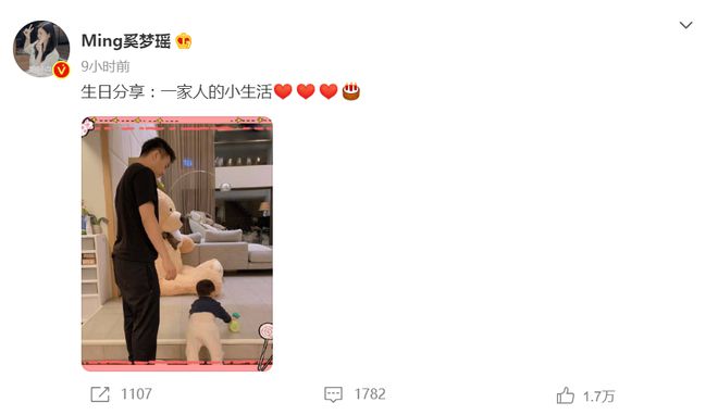 網易娛樂3月9日報道 3月8日是奚夢瑤32歲的生日,她曬出老公何猷君和兒子的同框照片,寫道“生日分享:一家人的小生活”。