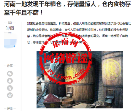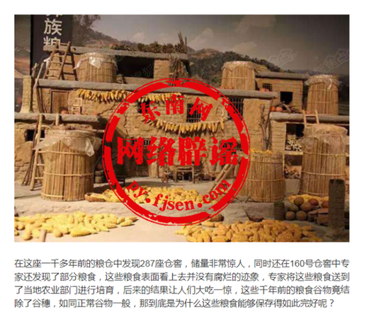 另外,官方部門以及權威媒體都沒有“回洛倉倉內食物千年不腐”的相關消息。
