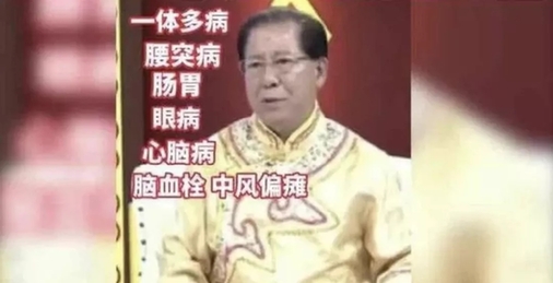 “今天我們也非常榮幸地邀請到了一位名震四海的傳奇中醫,北京中醫多學科研究中心主任醫師、國際中醫藥學會副會長、中華老慢病康復萬里行首席專家、國醫大師張文榮老師。張老師您好,聽說您手上有一個專治心腦病的奇方,吃上當天就見效……”這是張文榮在一則廣告中的出場方式。