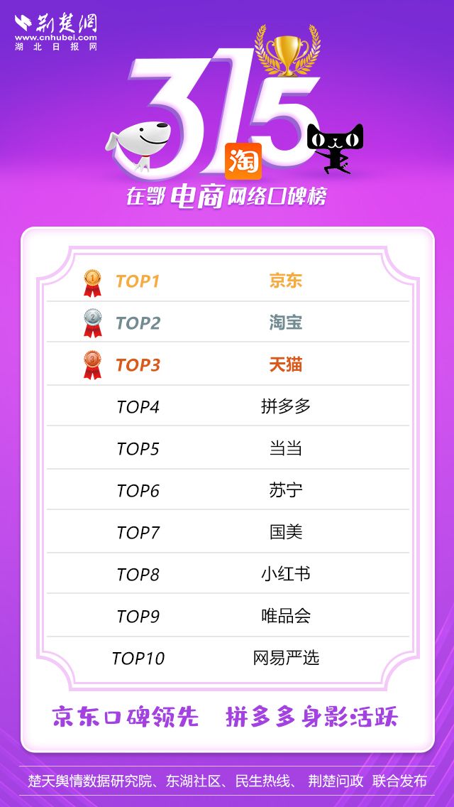 3月15日,荊楚網(wǎng)(湖北日?qǐng)?bào)網(wǎng))、楚天輿情數(shù)據(jù)研究院發(fā)布3·15在鄂電商平臺(tái)網(wǎng)絡(luò)口碑榜,京東居首位,淘寶位居第二位,天貓位居第三位。京東在疫情防控中表現(xiàn)亮眼,獲高熱度和好口碑;淘寶、天貓等積極開(kāi)展愛(ài)心助農(nóng)、助力脫貧攻堅(jiān),收獲好評(píng)如潮;拼多多與主流媒體互動(dòng)頻繁,有力提升了品牌影響力;當(dāng)當(dāng)網(wǎng)、小紅書(shū)等品牌口碑受到負(fù)面輿情影響,分別排名第五、第八。