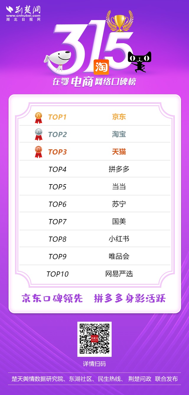 此次3·15行業網絡口碑榜,共分為保險、物業、家電、食品、酒水、電商六大行業。榜單依托荊楚網(湖北日報網)大數據輿情系統和東湖社區民生熱線、荊楚問政平臺,對和湖北消費者密切相關的部分行業品牌2020年1月至今年3月10日的網絡傳播口碑,進行統計分析。