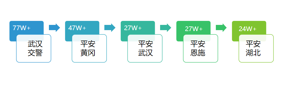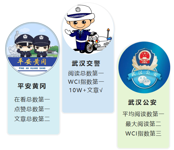 “武漢交警”“平安黃岡”“武漢公安”繼續(xù)霸占榜單前三甲。其中“武漢交警”“平安黃岡”連續(xù)四個月蟬聯(lián)榜單冠亞軍,“武漢交警”更是憑借4篇10萬+文章連續(xù)7個月蟬聯(lián)榜首位置;“平安黃岡”近四月排名穩(wěn)定,文章總數(shù)、閱讀總數(shù)、在看總數(shù)、點(diǎn)贊總數(shù)等單項指數(shù)都十分搶眼;“武漢公安”則奪得榜單季軍。