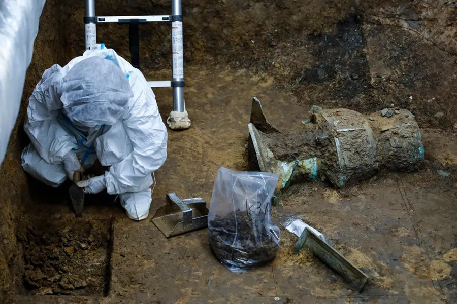 截至目前,考古工作者在三星堆遺址新發現的6座三星堆文化“祭祀坑”中,已出土重要文物500余件。