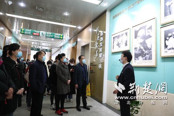 援鄂醫(yī)療隊(duì)代表們參觀醫(yī)院歷史文化長廊。通訊員供圖
