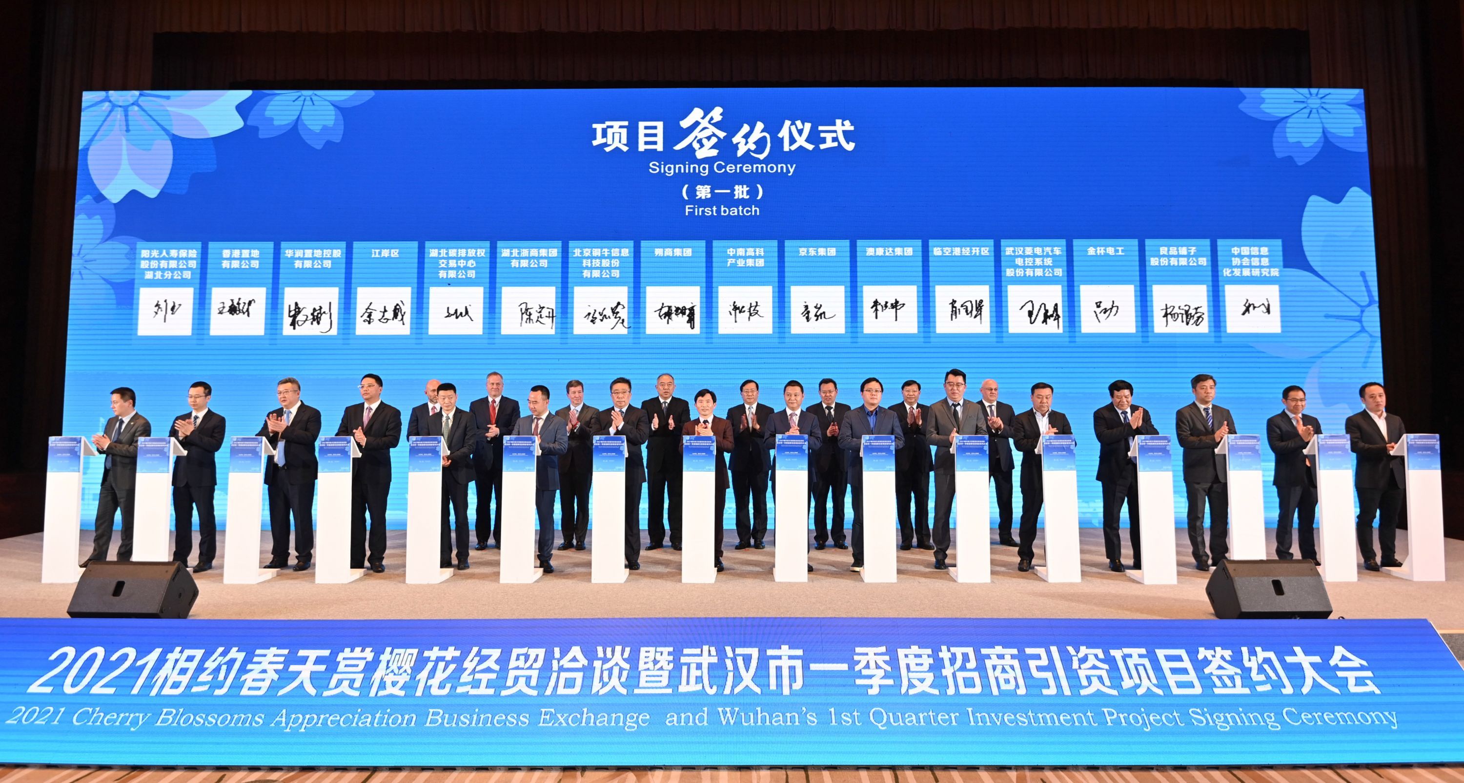 長江網3月24日訊 三月的武漢,春和景明、櫻花爛漫。3月24日,“相約春天賞櫻花”經貿洽談暨武漢市一季度招商引資項目簽約大會舉行,10位企業家受聘武漢招商大使。湖北省委常委、武漢市委書記王忠林,市委副書記、市長程用文出席大會并為武漢招商大使頒發聘書。