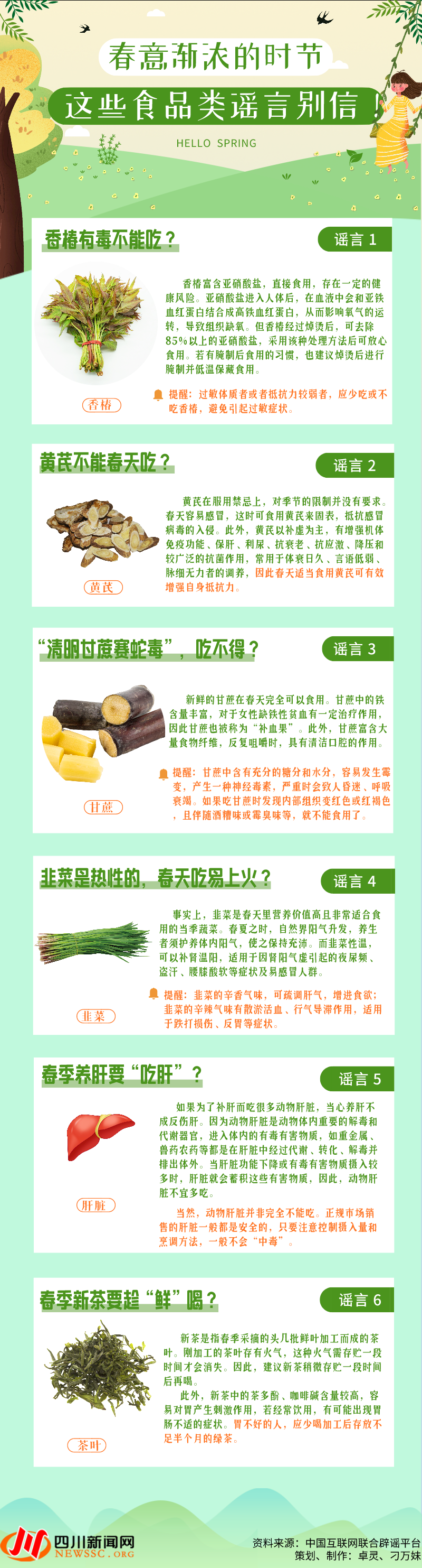 萬物復(fù)蘇,草長鶯飛,又到了春天的季節(jié)!“香椿有毒不能吃”“黃芪不能春天吃”“清明甘蔗賽蛇毒”……這些與春天相關(guān)的傳言,都是真的嗎?一起來識辨真假。