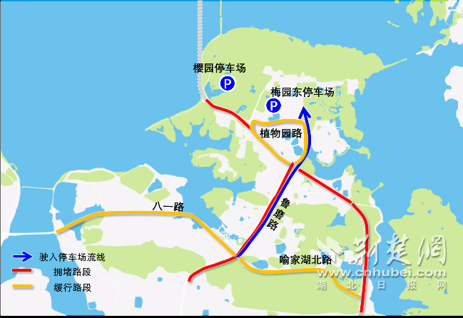 根據武漢交警交通運行態勢分析,預計本周末部分市內熱門景區仍將保持人流量高位運行狀態。新城區景點迎來賞花出游高峰,且受天氣影響,市內東湖風景區、曇華林、晴川閣等區域出游市民較為集中,景區周邊東湖隧道、喻家山北路、魯磨路、團山路、漁光小路、胭脂路、晴川大道10時至16時擁堵最為集中。由于新城區景點云霧山、花博匯、木蘭天池等景區杜鵑花、牡丹花、杏花等陸續進入盛花期,預計前往上述景區的游客將會較上周末增加10%左右,景區周邊祁泡線、知音湖大道、014 鄉道可能在 16 時至 18 時產生擁堵現象。