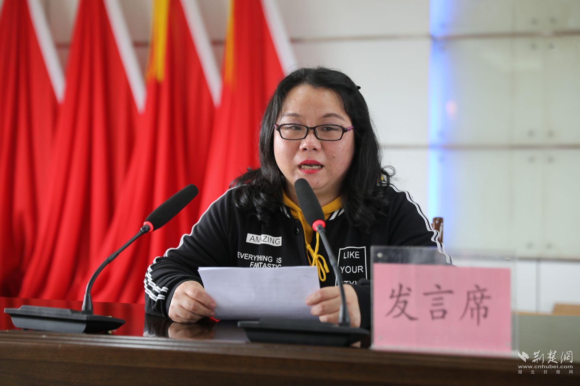 英模賈韜愛人作報告。通訊員供圖