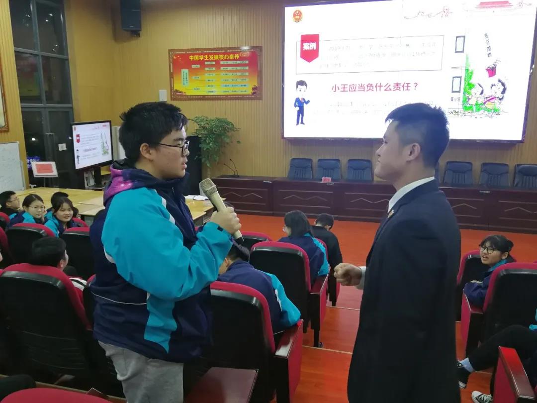 他用平實的語言和鮮活的案例,向同學們系統介紹了《民法典》的基本情況及《民法典》的立法宗旨和理念,并結合當下青少年熟悉的購買網游裝備、直播打賞等行為,以及相關案例,采取以案講法、以案學法的方式,生動的講述了《民法典》的編纂歷程、蘊含的法治理念、未成年人享有的民事權利等,讓學生們更好的理解和認識了《民法典》的意義以及其中有關未成年人的法律知識,告訴學生什么可以做、什么不可以做、自身的合法權益如何維護等問題。引導未成年人自覺樹立權利意識,并知曉在權利受到侵犯時如何運用法律武器來捍衛自己的合法權益。