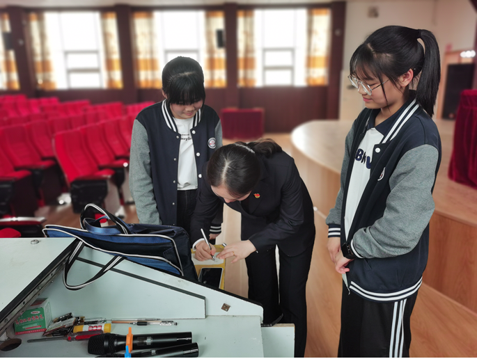 于此同時,在陽新縣實驗中學大禮堂,一堂由法治巡講團成員王盈盈精心準備、專門針對女生的法治教育課正在進行中。