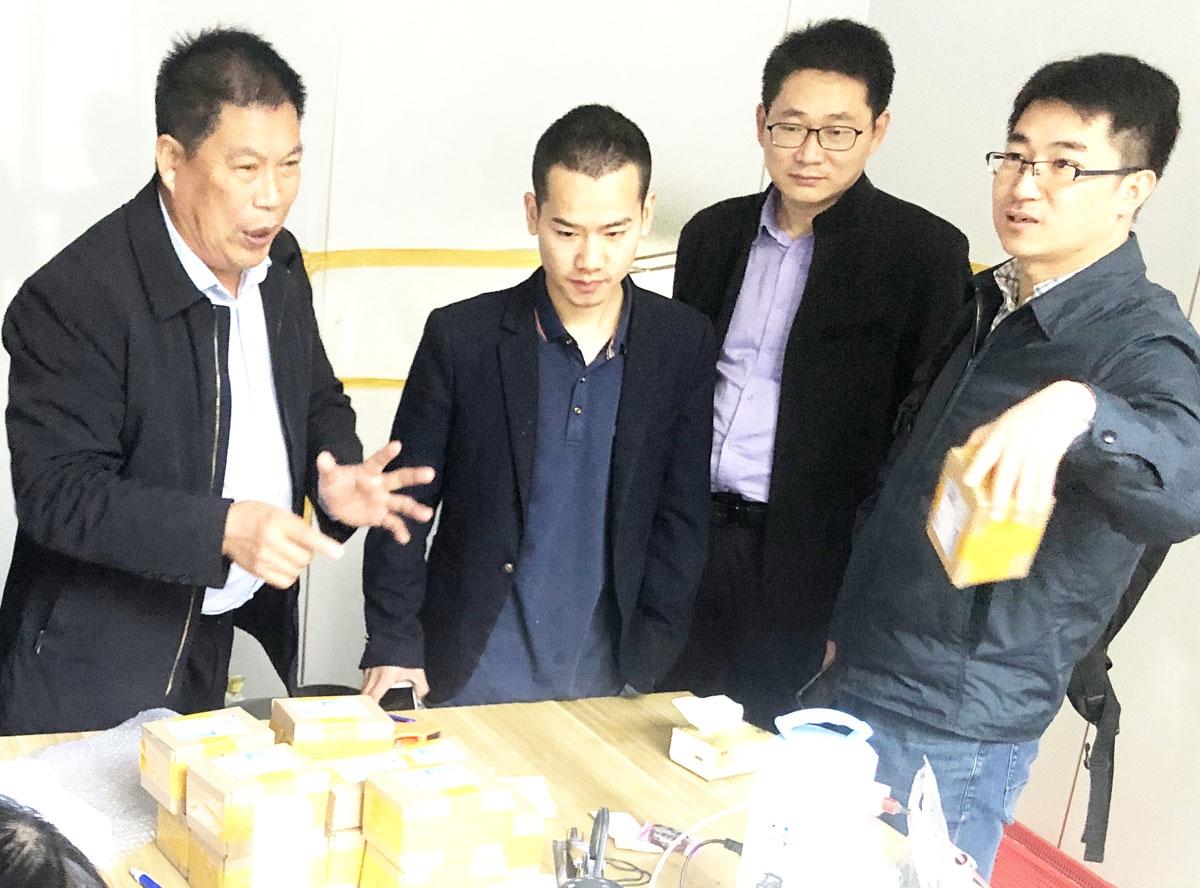 在下營村電商扶貧中心,劉廷洲(左一)介紹電商帶動脫貧攻堅情況。
