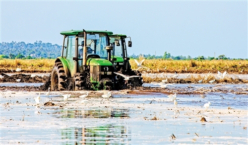 在莫桑比克萬寶莫桑農業園里,拖拉機正在進行播種前的準備工作。該園為中國在非洲最大規模的水稻種植項目,可通過合作種植方式帶動當地農戶增收。新華社記者 張 宇攝