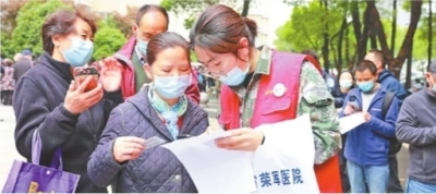 現(xiàn)場排隊(duì)接種的市民太多,很多老人手機(jī)操作不太熟,需要有人手把手教,正當(dāng)醫(yī)生護(hù)士為此發(fā)愁時(shí),現(xiàn)場傳來一陣嘶啞的廣播聲:“各位居民,由于接種人員較多,醫(yī)院現(xiàn)在招募一批志愿者,加入我們的志愿服務(wù)隊(duì),協(xié)助維護(hù)秩序,以保障疫苗接種工作順利開展,希望大家踴躍報(bào)名。”