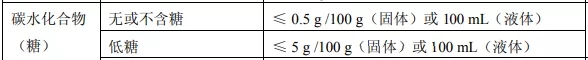 據《食品安全國家標準預包裝食品營養標簽通則》的要求,如果某食品標注“低糖”,則每100g/ml中的碳水化合物(糖)含量≤5克;如果標注“無糖”則要求更高,每100g/ml中碳水化合物(糖)含量≤0.5克。