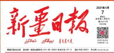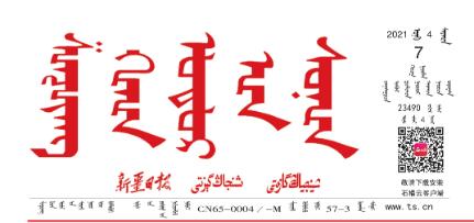 漢、維吾爾、哈薩克、蒙古四種語言文版的新疆日報報頭。
