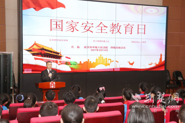 荊楚網(湖北日報網)訊(記者張揚 通訊員劉洋)“國家安全,人人有責!”“國家利益高于一切!”4月14日下午,武漢市青山區虹蔚社區吉林街小學里童聲朗朗,孩子們在武漢市中級人民法院刑事審判第二庭四級高級法官帶領下,不斷深化國家安全意識。