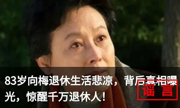 自媒體造謠,讓她和家人備受困擾。在相關文章下留言澄清以及采取實名投訴的辦法都無效的情況下,向梅不得不站出來通過媒體告訴大家:“我的晚年生活很幸福,兒子、兒媳都很孝順。”她不僅為自己發聲,還為老藝術家們發聲:“用我們的真名真姓和照片,必須有事實為依據。平臺對自媒體缺乏監管,讓這些謠言四處泛濫,給社會造成惡劣影響,也讓我們這些辛苦了一輩子的老演員感到寒心。”