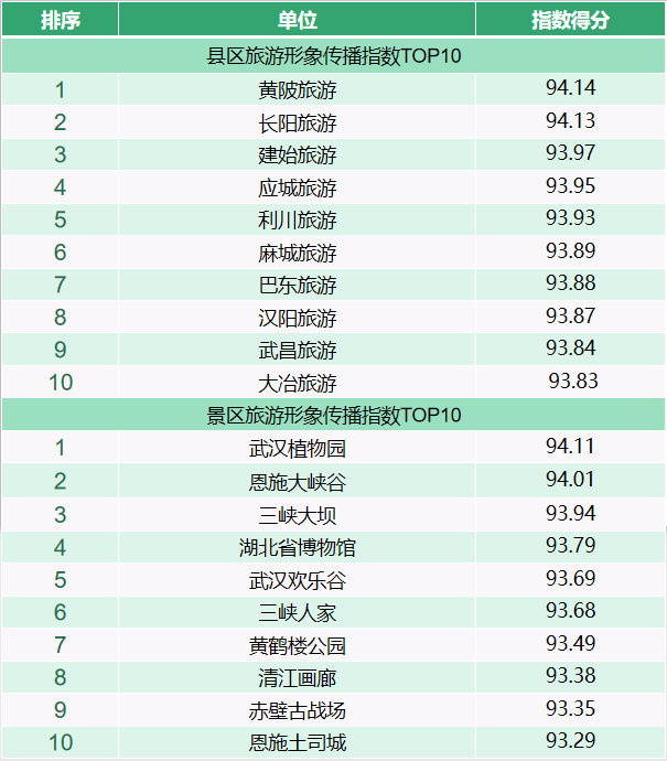 湖北旅游傳播指數榜第5期:江夏旅游、恩施大峽谷熱度居高