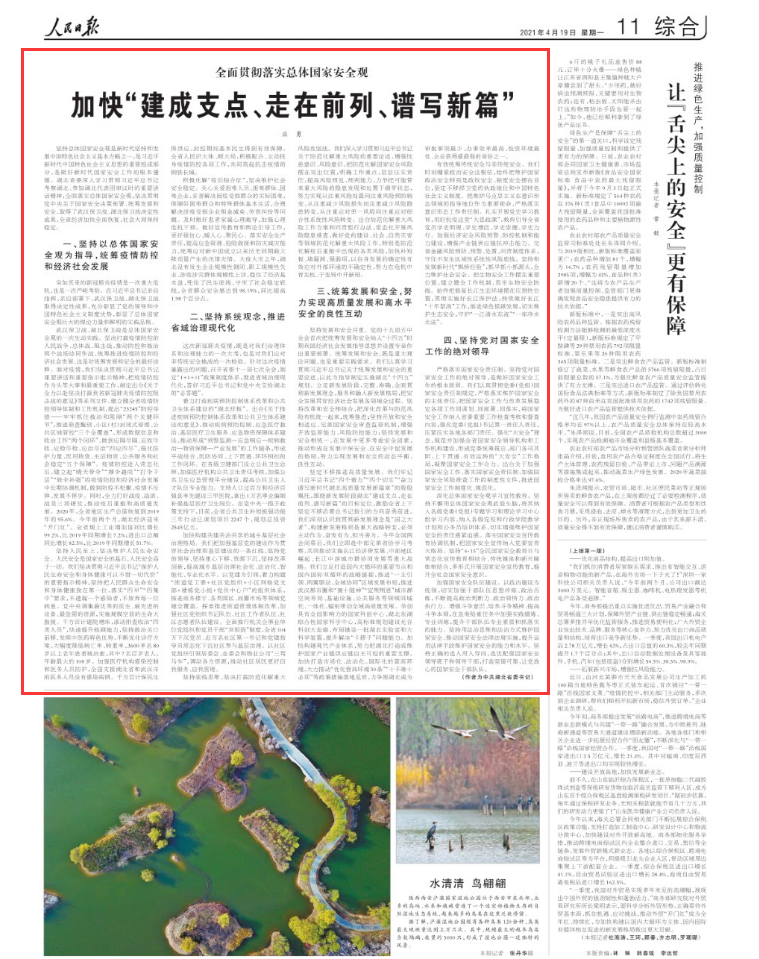 4月19日,人民日?qǐng)?bào)刊發(fā)湖北省委書記應(yīng)勇署名文章《全面貫徹落實(shí)總體國(guó)家安全觀 加快“建成支點(diǎn)、走在前列、譜寫新篇”》。
