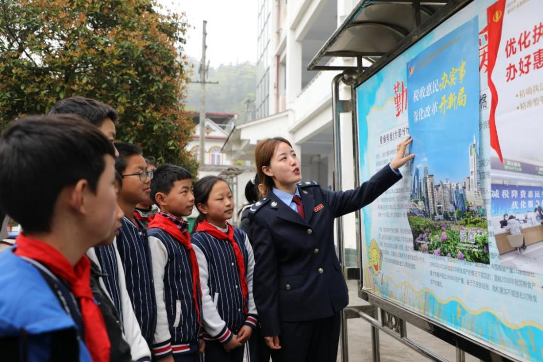 “稅收與同學們有沒有關系呢?大家仔細想想,我們所在的教室是誰出錢修的呢?是國家。國家的錢又是從哪里來?是納稅人交納的稅……”在恩施市崔壩鎮斑竹園小學的稅收小課堂上,市稅務局干部喻龍用身邊案例講解稅收意義。