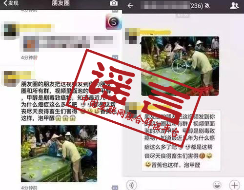 近日,多個微信公眾號大肆傳播《要不是記者偷拍,你敢相信這是真的嗎?》的視頻。據查,其中的內容都是通過拼接不同時期、不同地區的相關謠言或新聞畫面而成,涉及“打針螃蟹”“防腐劑水蜜桃”“泡藥香蕉”“注水肉”等多個謠言片段。