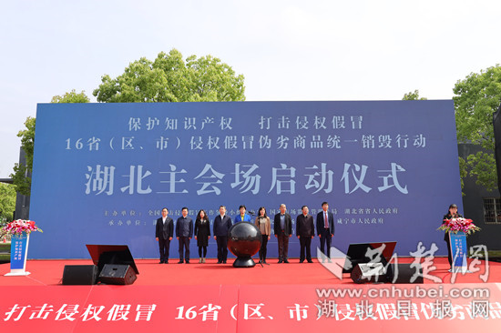 荊楚網(wǎng)(湖北日報網(wǎng))訊(記者張茜 通訊員張永康)4月23日,“保護知識產(chǎn)權 打擊侵權假冒”16省(區(qū)、市)侵權假冒偽劣商品統(tǒng)一銷毀行動在湖北省咸寧市啟動,北京、河北、內蒙古、上海、湖南、廣東、重慶、甘肅等15省(區(qū)、市)設分會場,同步開展銷毀。