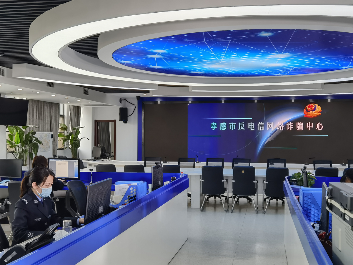 4月23日,湖北省孝感市反電信網絡詐騙中心內,公安96110報警專線無縫對接,第一時間獲取警情;孝感移動技術專家駐點值守,全力協助公安機關分析案件、查控反詐通訊號碼、檢查網站。據了解,孝感移動為當地公安部門開通了本地96110語音專線,今年2月14日,孝感一位市民通過96110反詐專線咨詢網貸相關事宜,民警經過仔細甄別,幫助其識破騙局,成功保住2萬元錢。