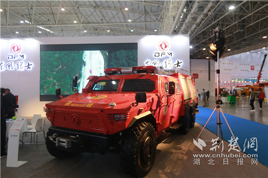 此外,特種車輛是本次展會的一個大看點,東風猛士裝甲消防車、西貝虎水陸兩棲全地形車、伸縮臂高空救援車、應急救援指揮車等一大批特種車輛悉數登場。在隨州應急產業示范基地展臺,20多臺不同型號用途的應急專用車輛更是“組團”亮相。
