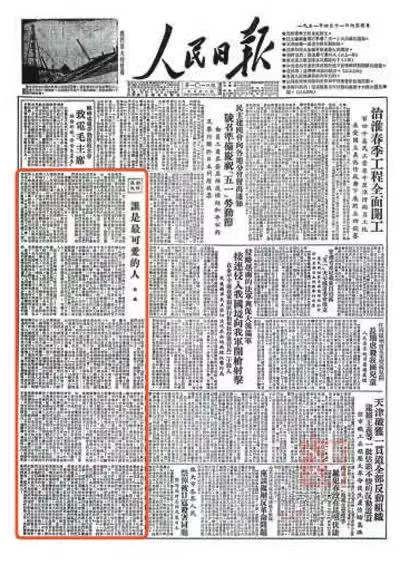 圖為1951年4月11日,《誰是最可愛的人》首發于人民日報頭版。
