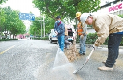 渣土中隊負責人和該區清污專班聯系,調來一輛灑水養護車。施工人員用鐵鍬和掃帚鏟掃泥餅,司機用高壓水槍沖洗路面浮塵。經過反復作業,泥土被清理干凈,路面恢復了本色。渣土中隊負責人表示,會加大對該工地的監管工作,督促其依照相關規定做好運輸車輛的清潔工作。