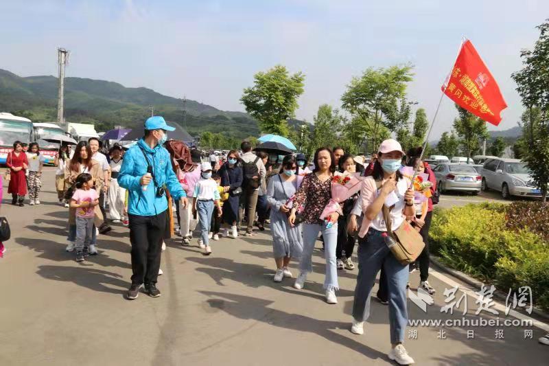 大巴上的特殊游客,是來自湖南、山東援黃醫(yī)療隊的醫(yī)療隊員及隨行親友,共計60余人。在麻城市政府相關(guān)部門工作人員的熱烈掌聲及龜峰山景區(qū)員工們列隊歡迎中,他們步入景區(qū)北大門游客中心前廣場。