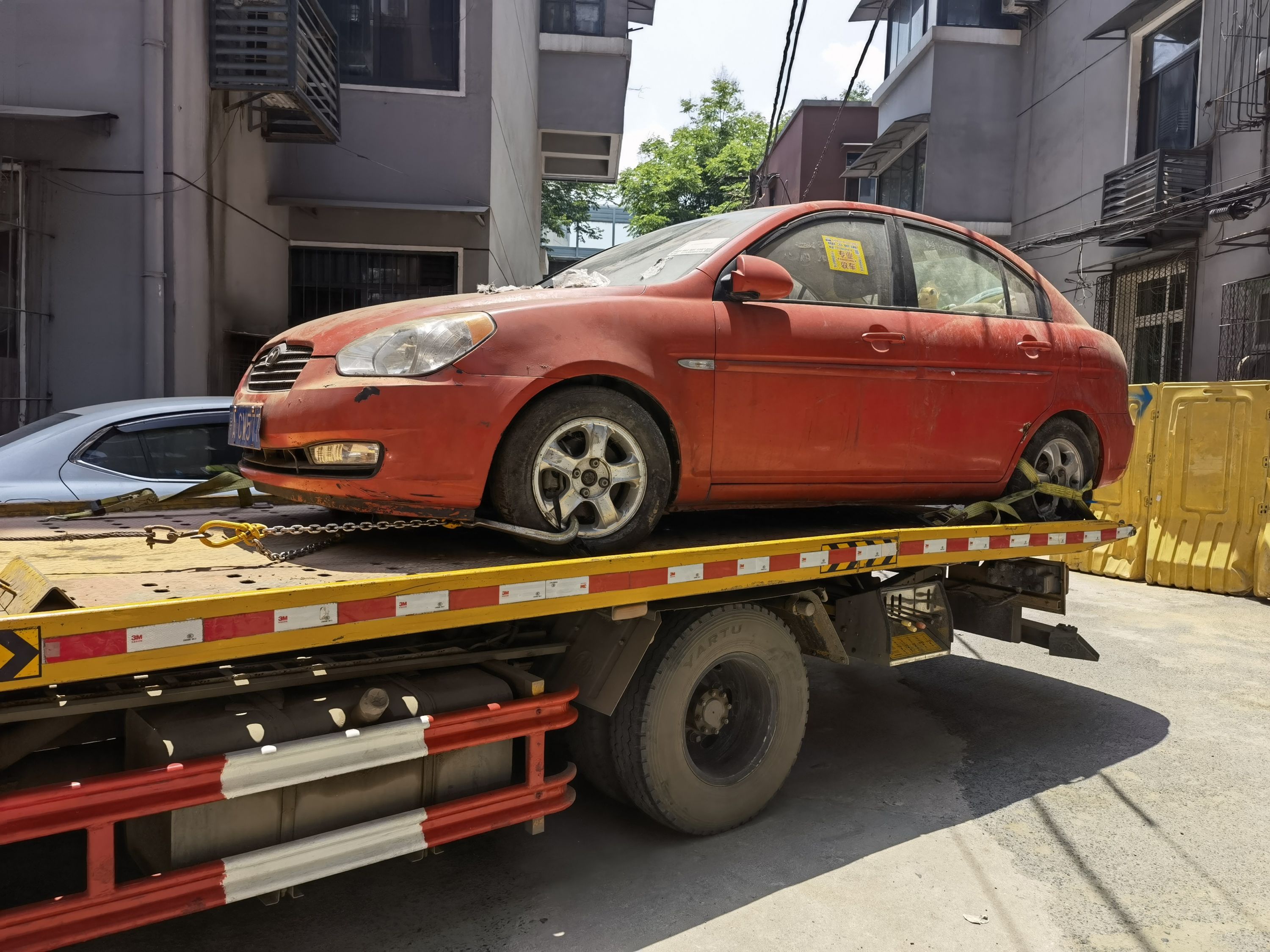 由于紅色現代轎車登記的車主聯系方式無法接通,交警通過社區網格員聯系上對方,表示將拖移該車輛并強制報廢,車主表示,由于自己在外地工作,一直沒有回武漢,既然車輛已經達到強制報廢標準,愿意服從交警的執法,同意車輛被強制拖移。